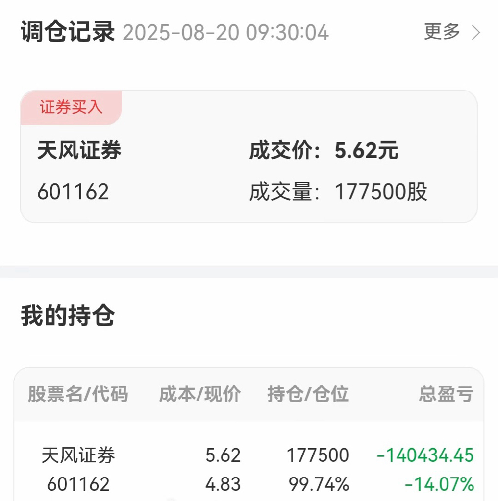 $天风证券(SH601162)$ 主力主力,年底我要给家里老人做手术行行好吧,放我出去