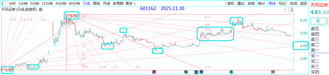 2.1的8:1线 6.5的3:1线,未来会在3.9-4元相交,构成一个江恩价格