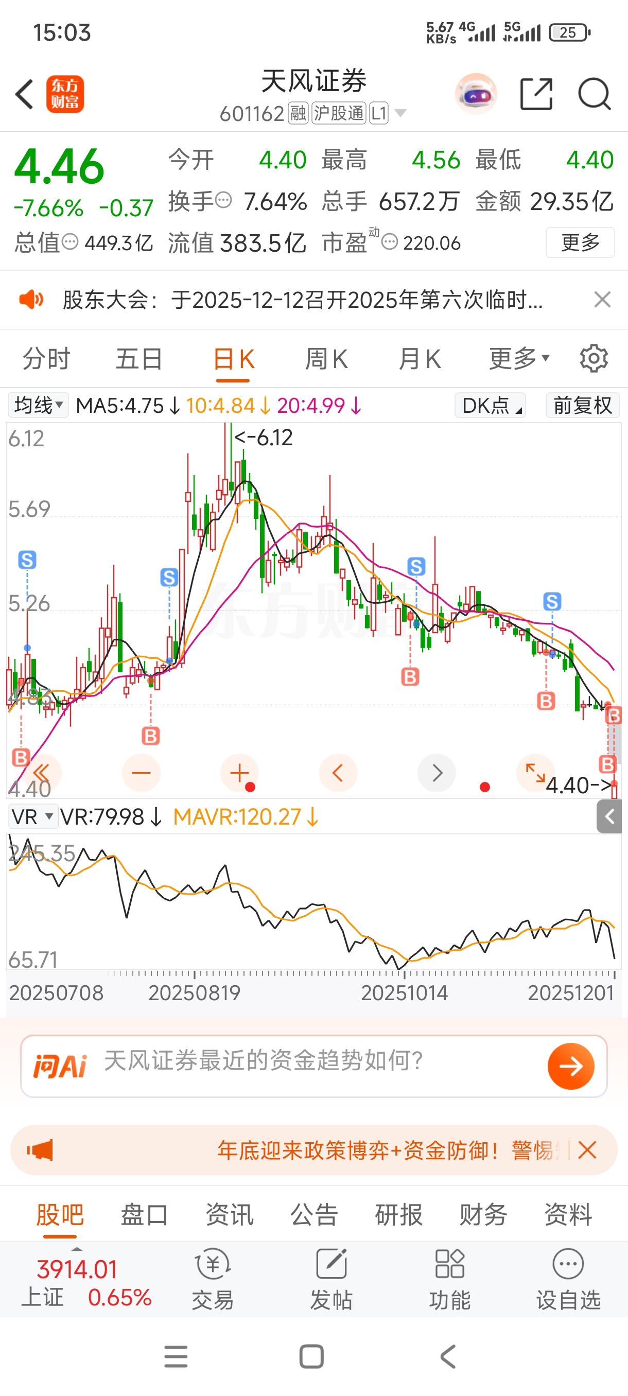 $天风证券(SH601162)$ 让家人们先走,我来垫后。。。