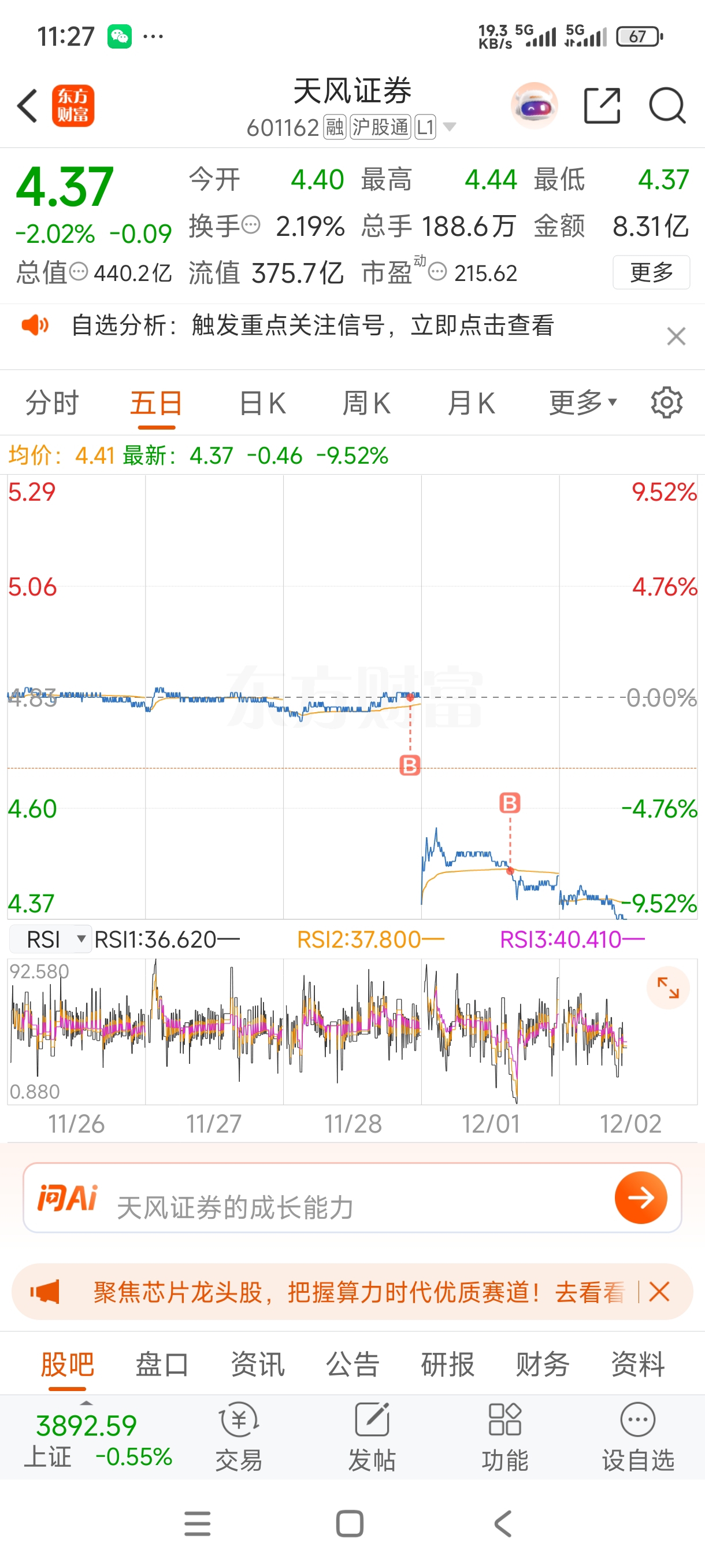 $天风证券(SH601162)$ 我错了,家人们别砸了,亏的路都走不稳了。。。