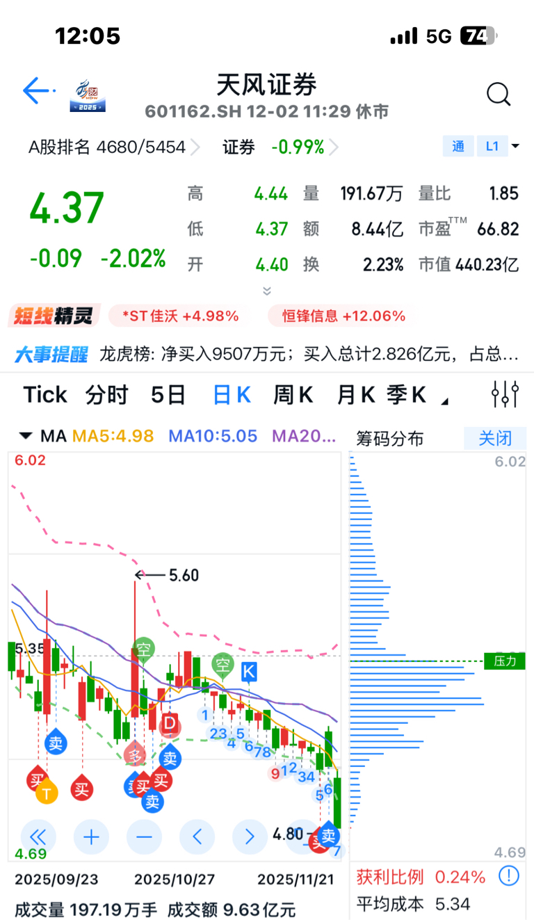 $天风证券(SH601162)$
