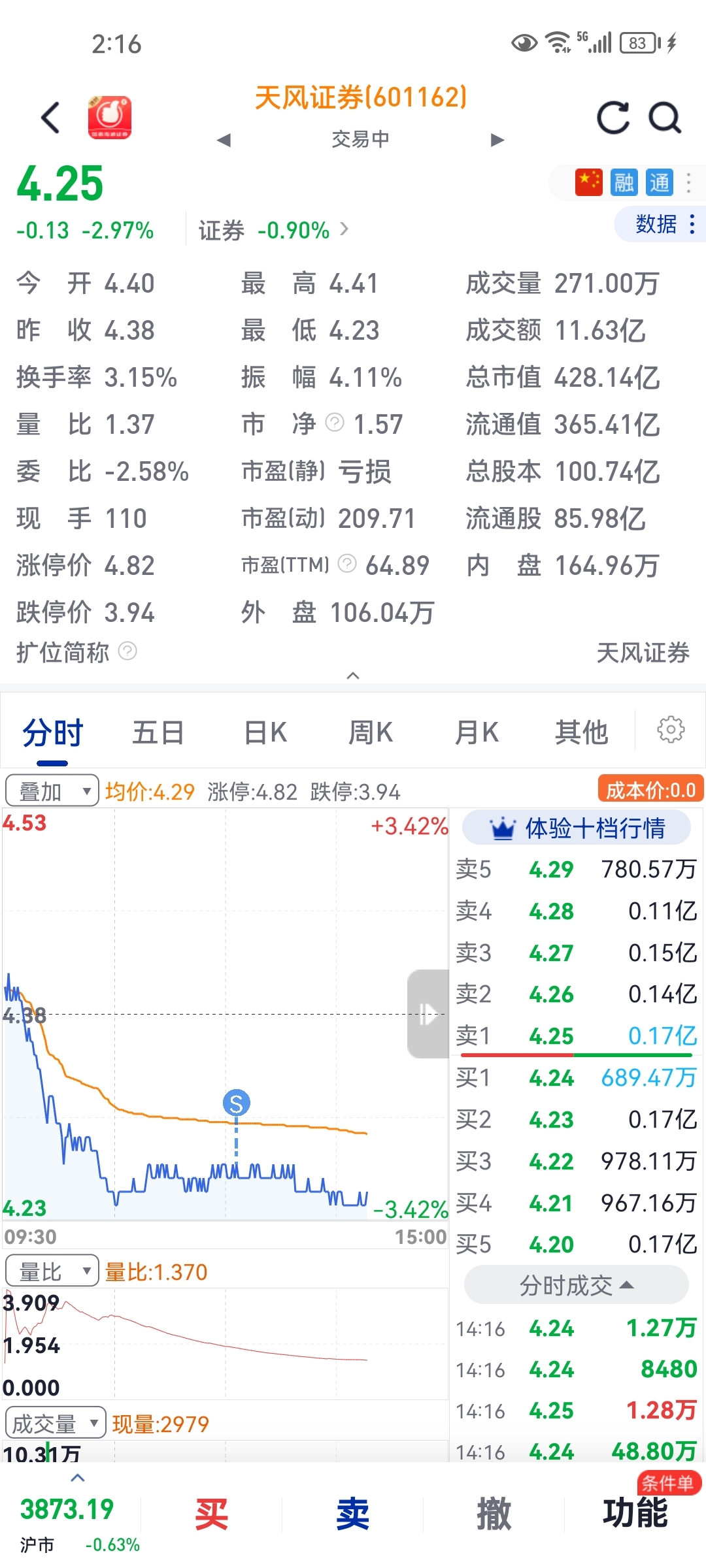 $天风证券(SH601162)$ 亏两个点出来呢,没有几个急跌,不能进去