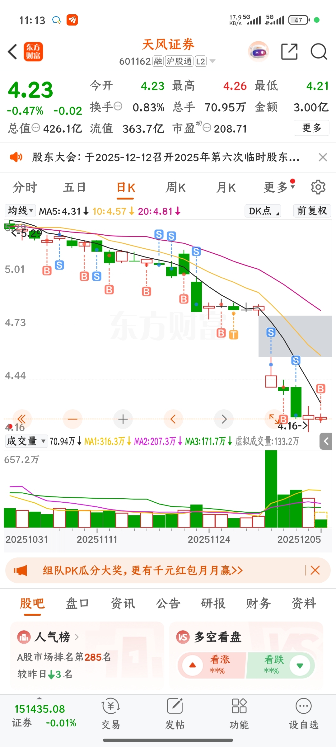 $天风证券(SH601162)$ 买了这货,亏麻了