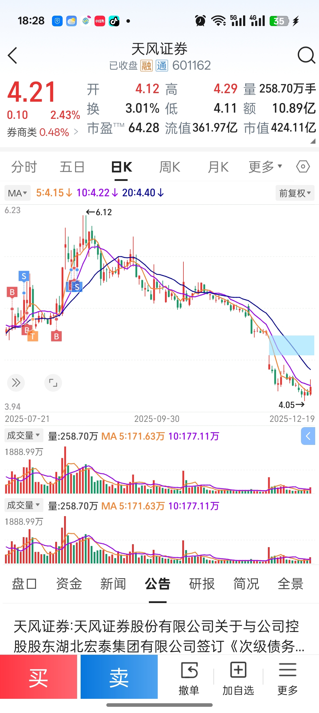 $天风证券(SH601162)$ 垃圾,亏着早卖了