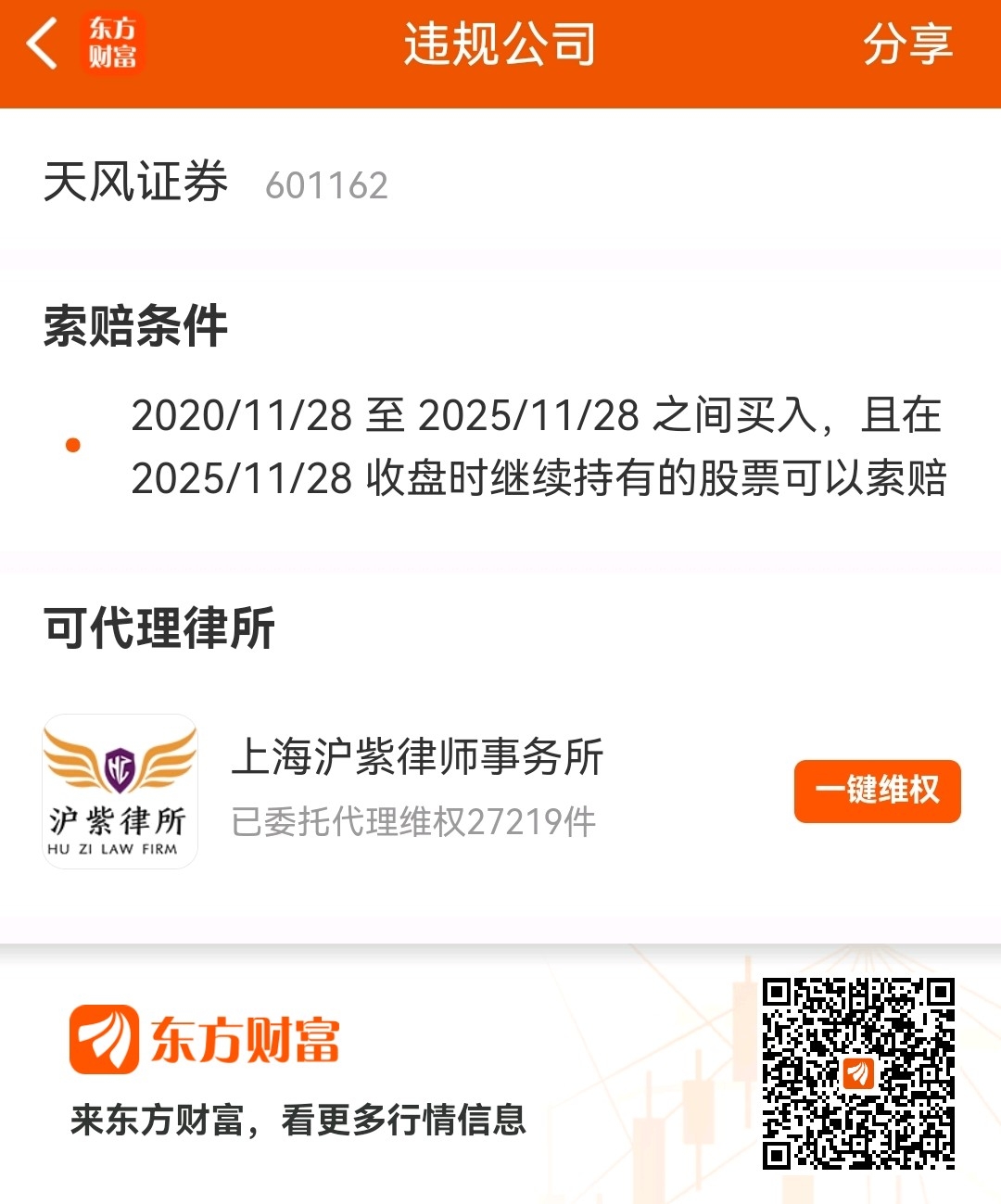 $天风证券(SH601162)$ 维权了