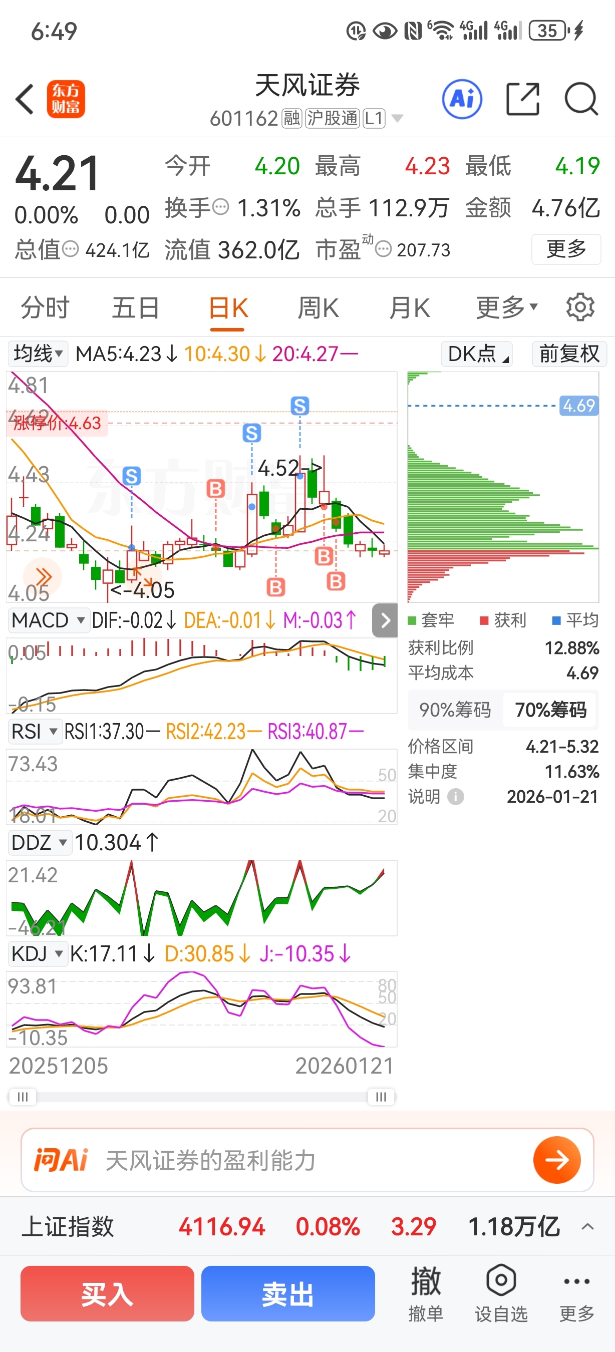 $天风证券(SH601162)$ 没钱补了,随便你吧