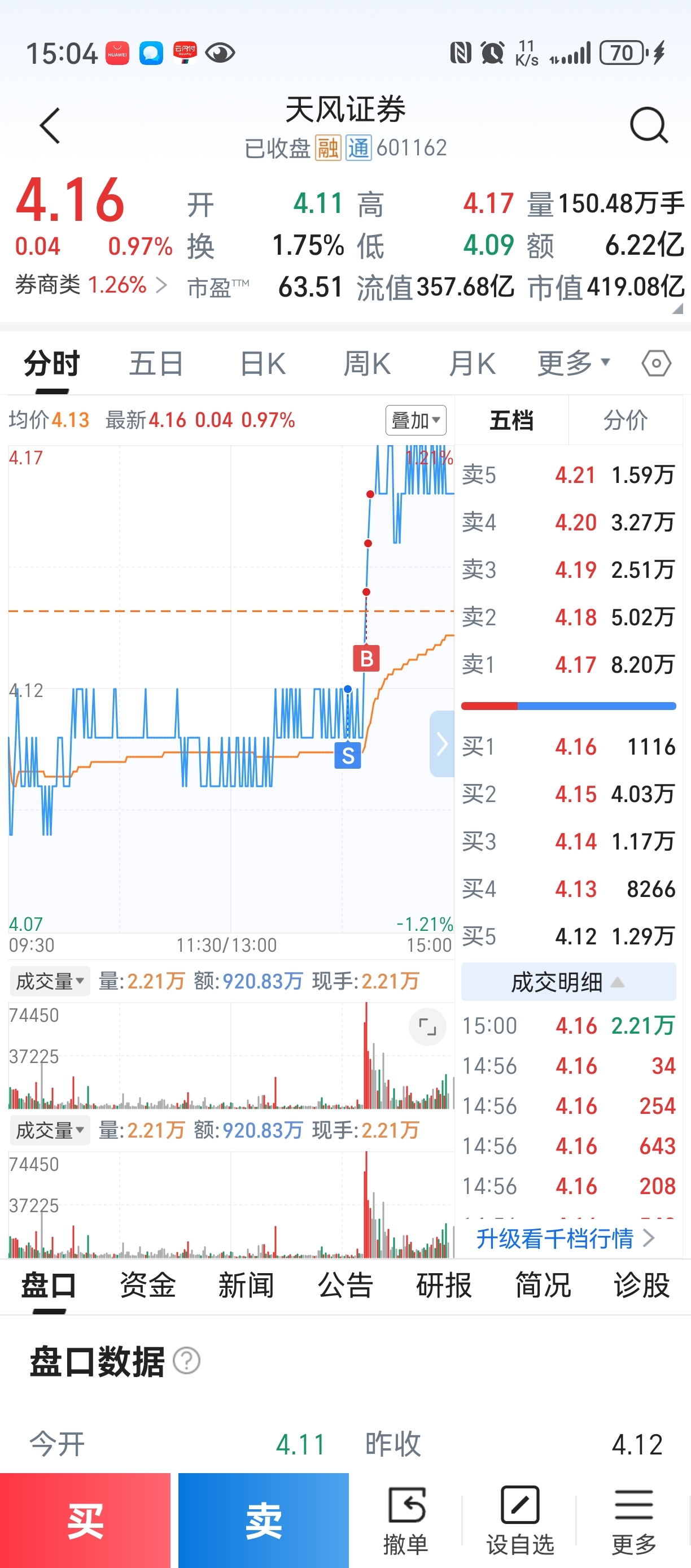 $天风证券(SH601162)$ 一卖就涨,一买就跌有本事明天把我埋了。