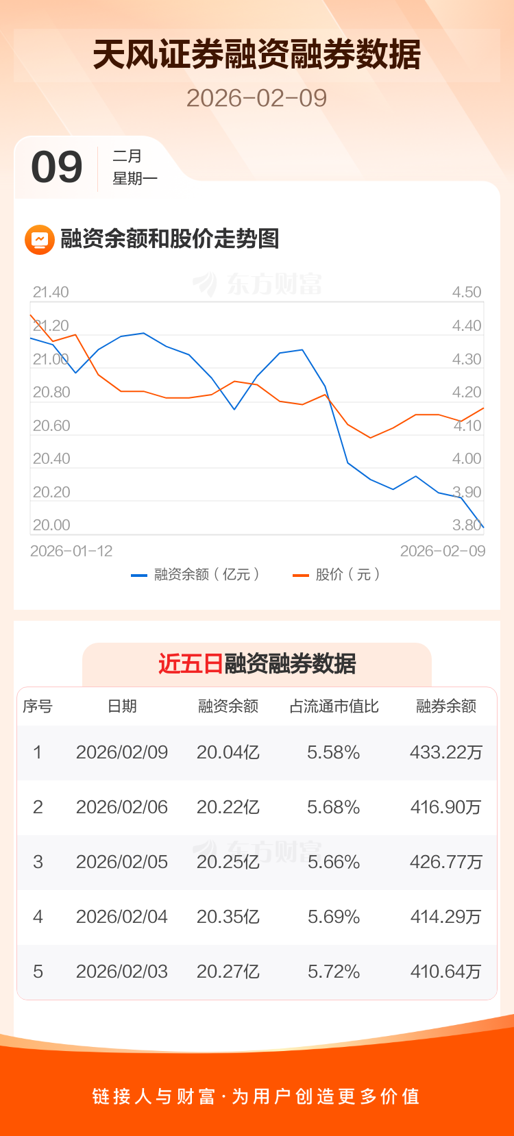 交易所最新数据显示,天风证券于2026年2月9日获融资买入3113.36万元,融资偿还4930.20万元,当日融资净偿还1816.84万元。目前,该股融资余额20.04亿,占流通市值比例为5.58%。