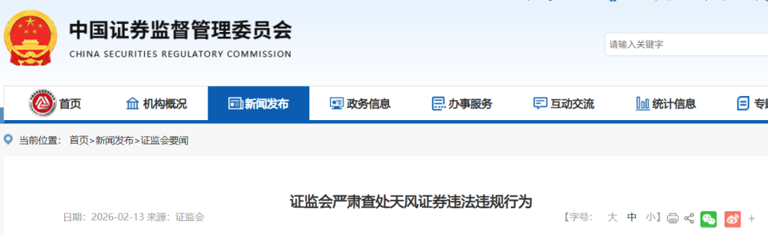 2月13日,天风证券(601162)发布公告称,公司于近期收到证监会下发的《立案告知书》。因公司涉嫌福建省永安林业(集团)股份有限公司持股变动信息披露违法违规,根据《中华人民共和国证券法》《中华人民共和国行政处罚法》等法律法规,决定对公司立案。