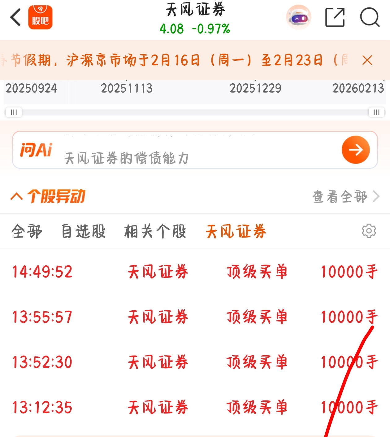 $天风证券(SH601162)$ 今天谁买进去的大单,吓死人了