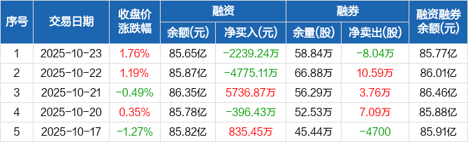 兴业银行:融资净偿还2239.24万元,融资余额85.65亿元(10-23)