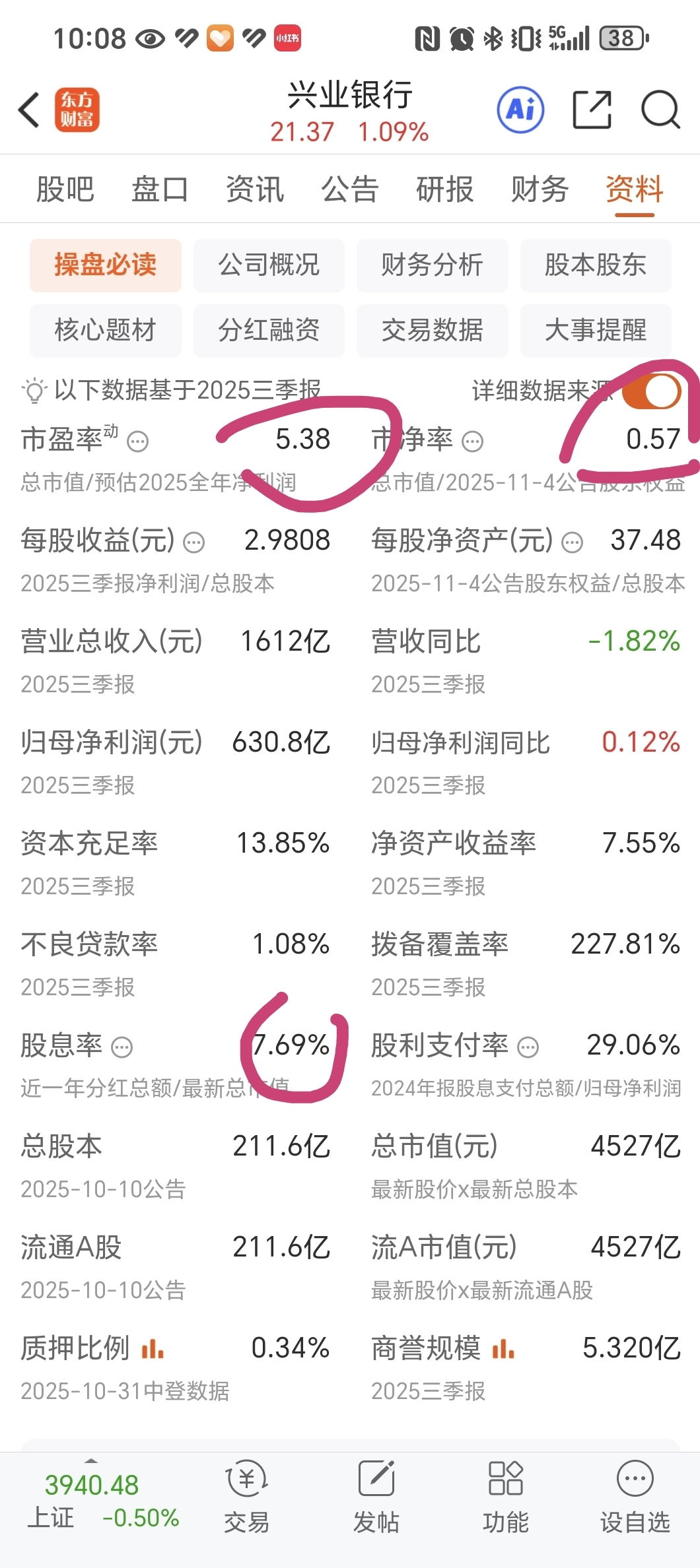$兴业银行(SH601166)$ 兴业银行指标没的说呀