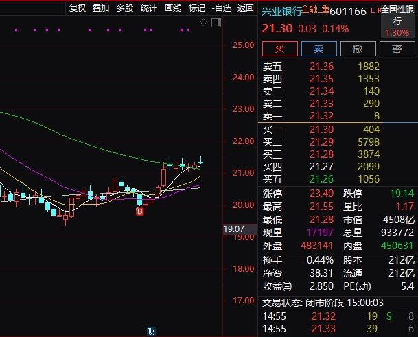 $兴业银行(SH601166)$ 我看你也上不去,再掉下来一次。让我再买一点,买少了。