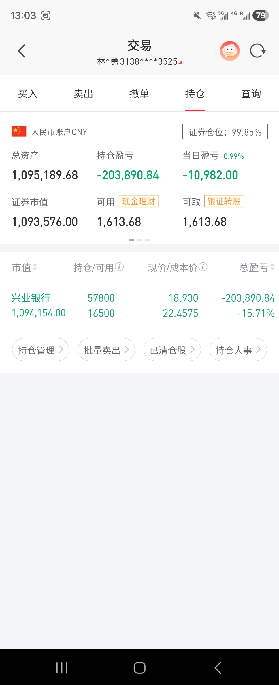 我在一个账户已经亏损20w情况下,在另外一个账号又买入80w。就当给你们心理按摩