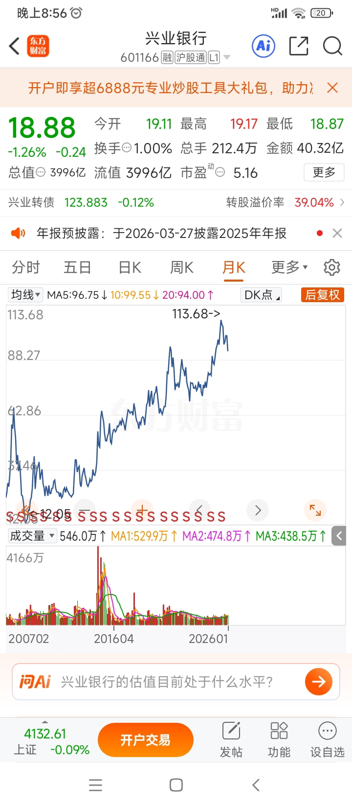 $兴业银行(SH601166)$ 打开月线,一看,我的天,主力赚几倍啦