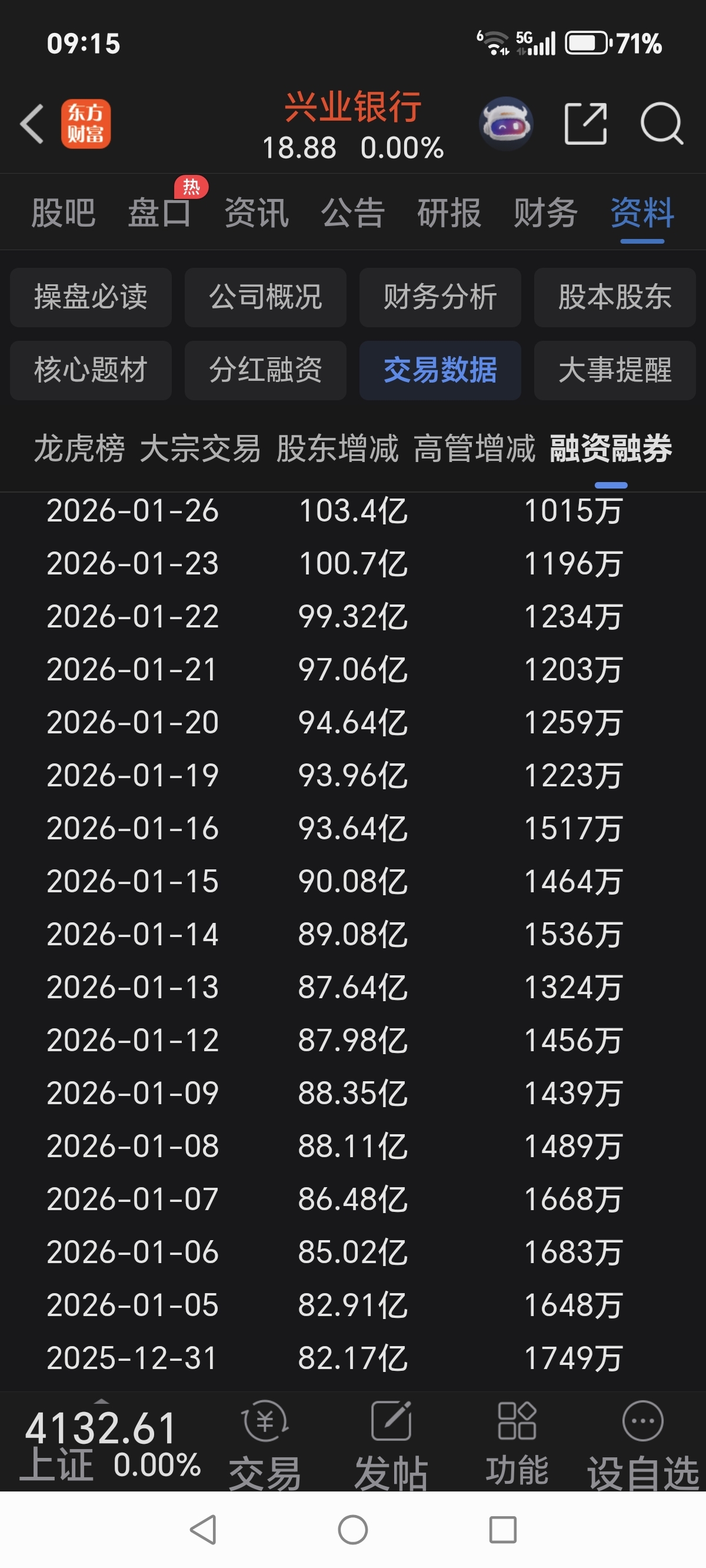 $兴业银行(SH601166)$ 融资盘从82亿增到103亿加仓了21亿