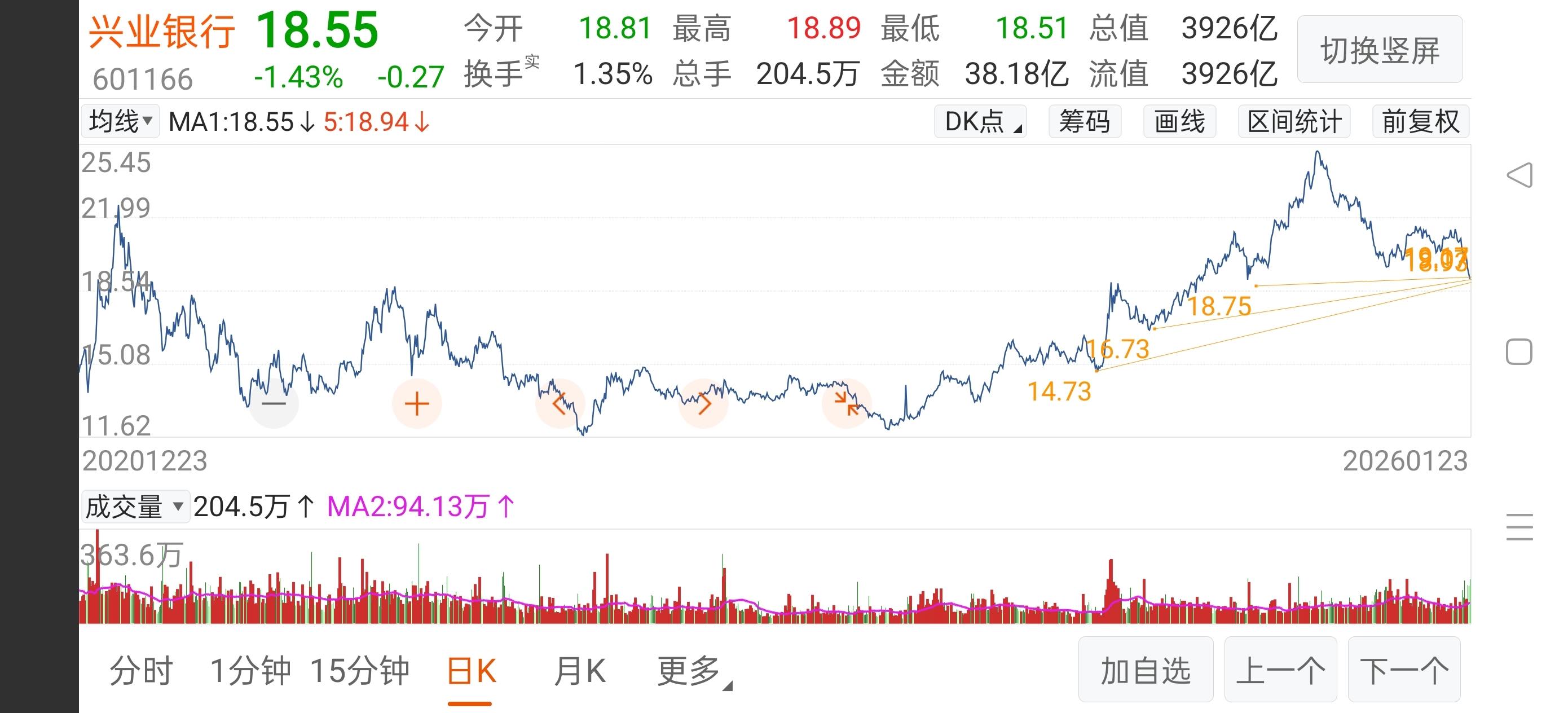 $兴业银行(SH601166)$ 分红还要跌5毛,看来要跌破16.7了