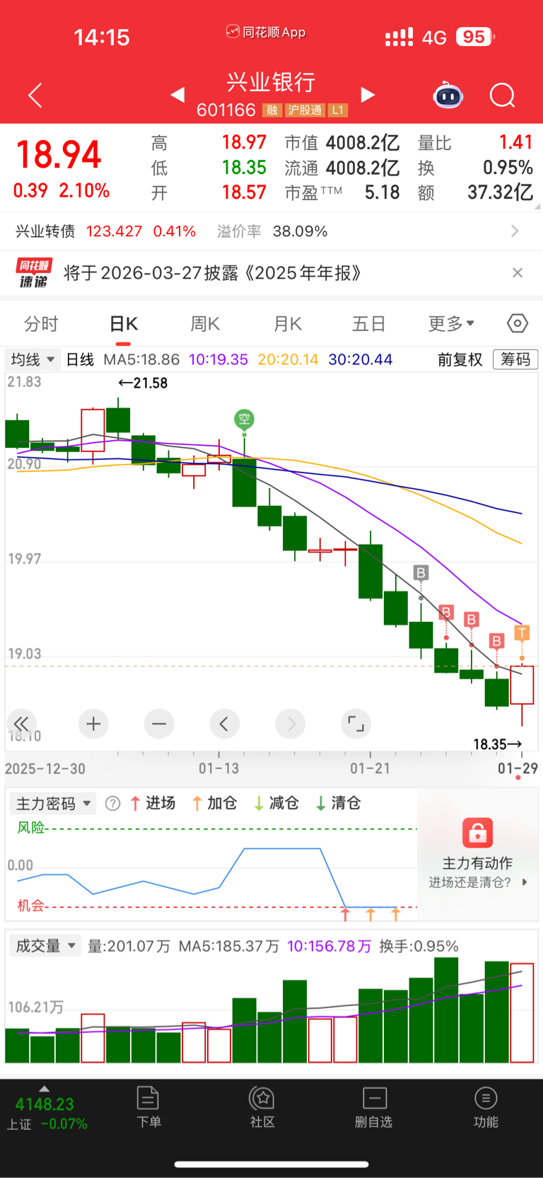 $兴业银行(SH601166)$ 继续冲!要求不高。反弹到20块我就走