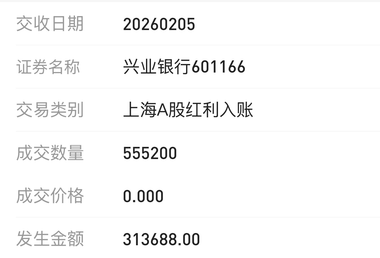 $兴业银行(SH601166)$ 股息入账了