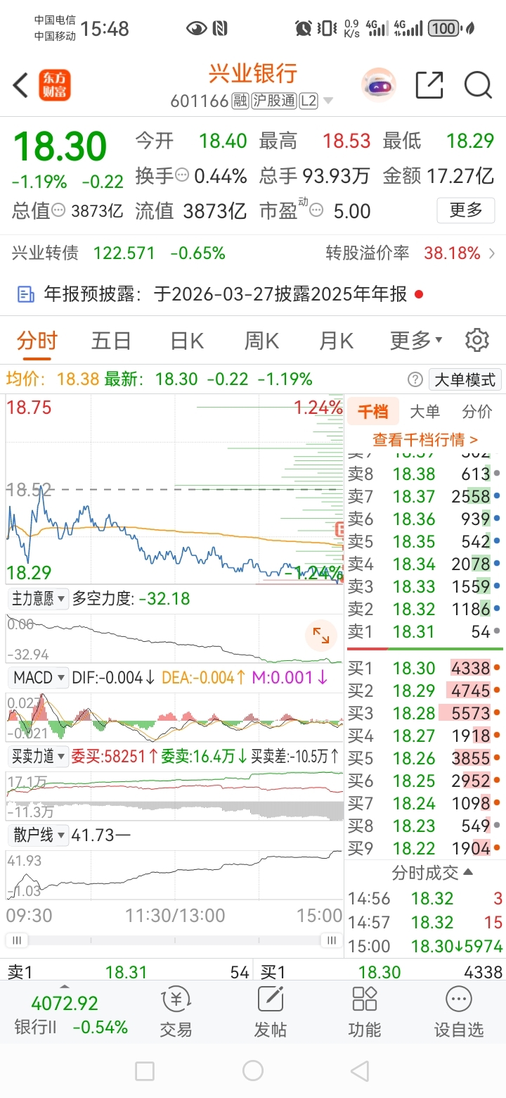 建仓了,四大行走势沿着五日线慢慢上推,兴业业绩已经预告,不应担心业绩雷。