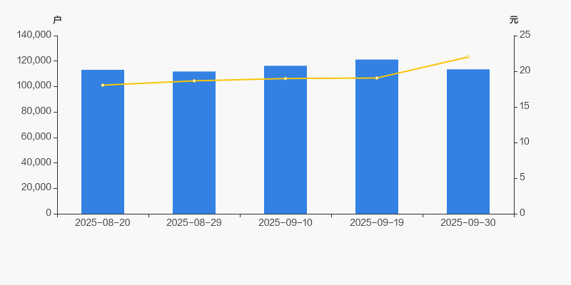 2025年8月20日至今,公司股东户数有所增长,区间涨幅为0.35%。2025年8月20日至2025年9月30日区间股价上涨21.88%。