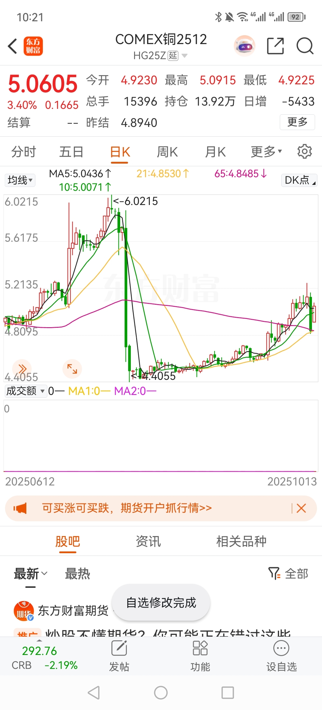 $西部矿业(SH601168)$ 不要丢筹码,铜比黄金更大的一个趋势,美国同期货已经涨回来了