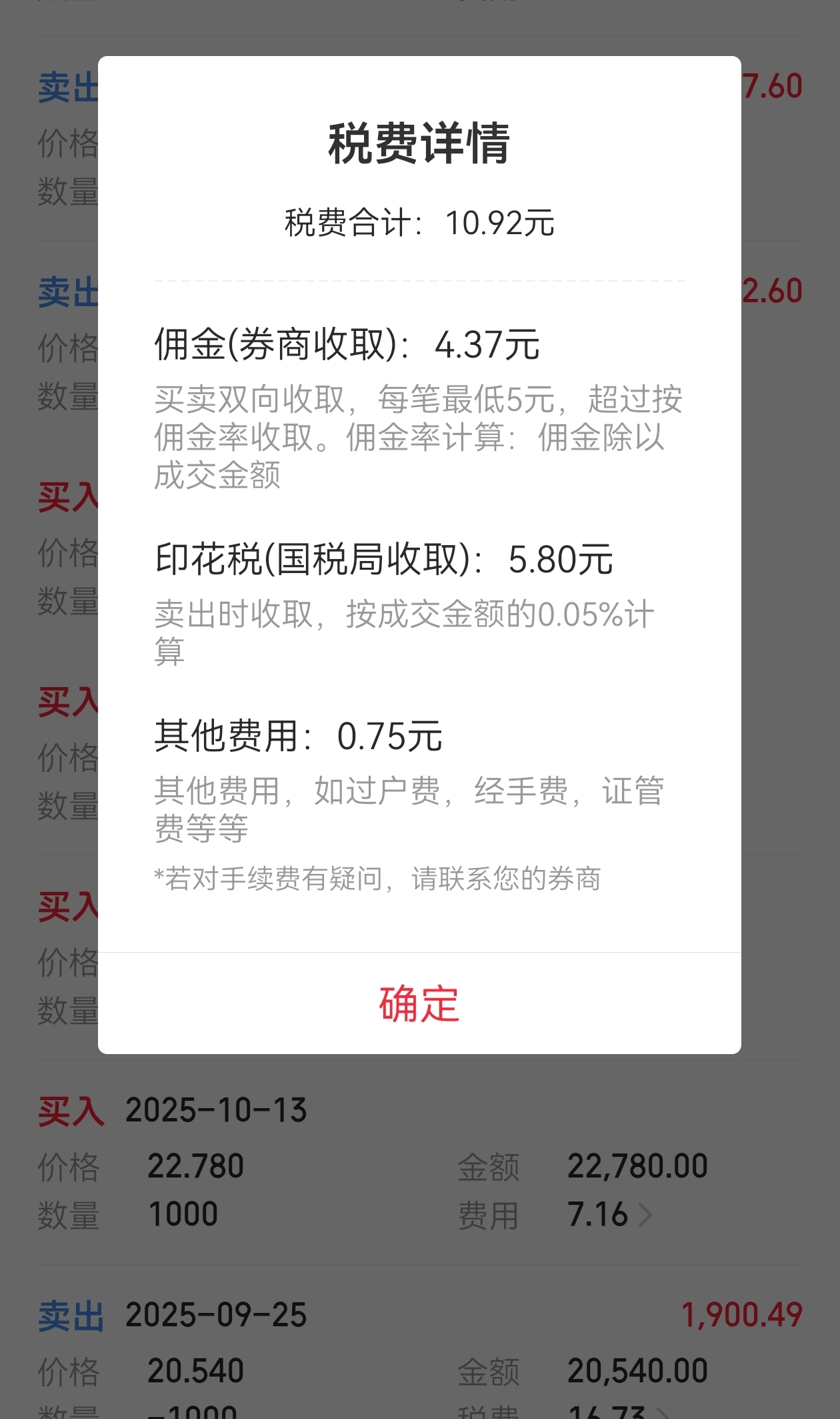 兄弟们,我这个税费怎么感觉高的离谱,是我证券开户商收取的点高吗?咋回事。懂的兄弟