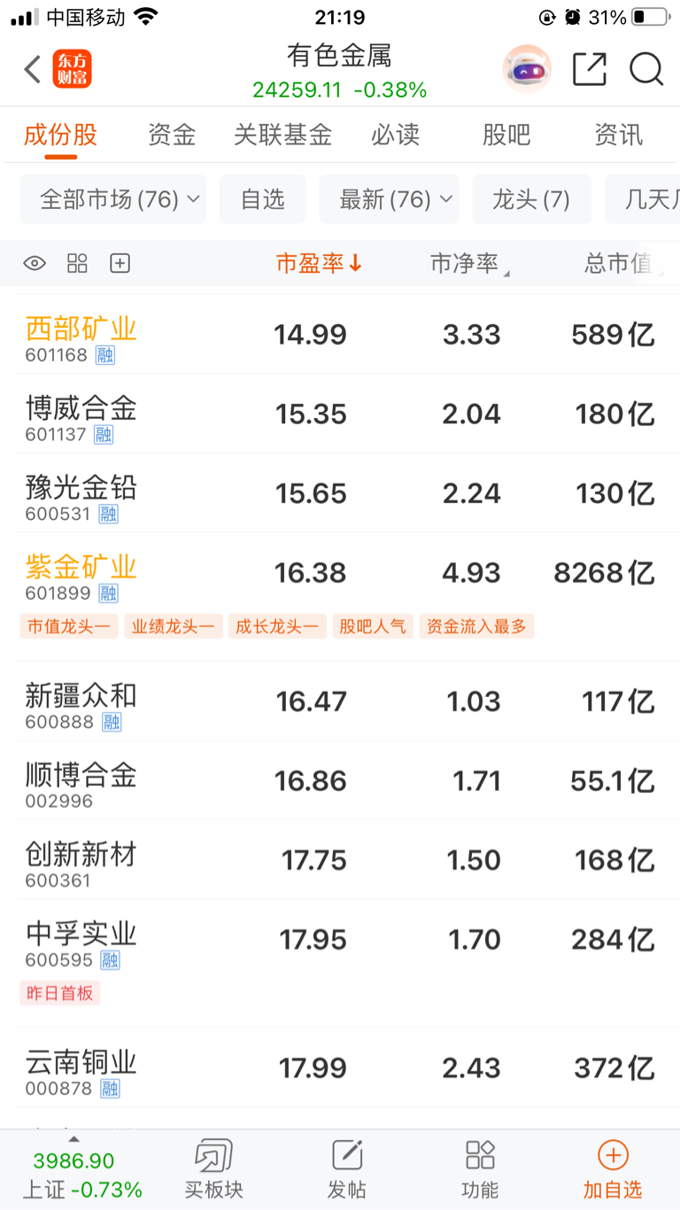 $西部矿业(SH601168)$ 市盈率铜矿第一,就是倒数常客