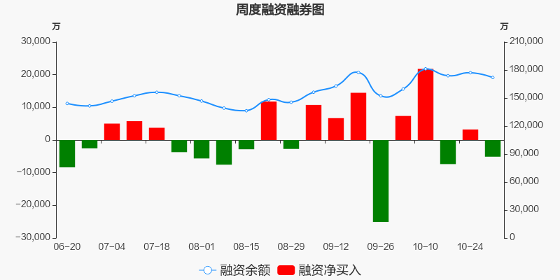 西部矿业本周(2025/10/27-2025/10/31)累计跌幅达0.95%,截至10月31日最新股价报收23.97元。从增量上来看,10月27日至10月31日融资买入交易规模10.64亿元,融资偿还规模11.15亿元,期内融资净偿还5101万元。从存量上来看,截止11月2日,西部矿业融资融券余额17.41亿元,其中融资余额规模17.2亿元,融券余额规模2094.82万元。