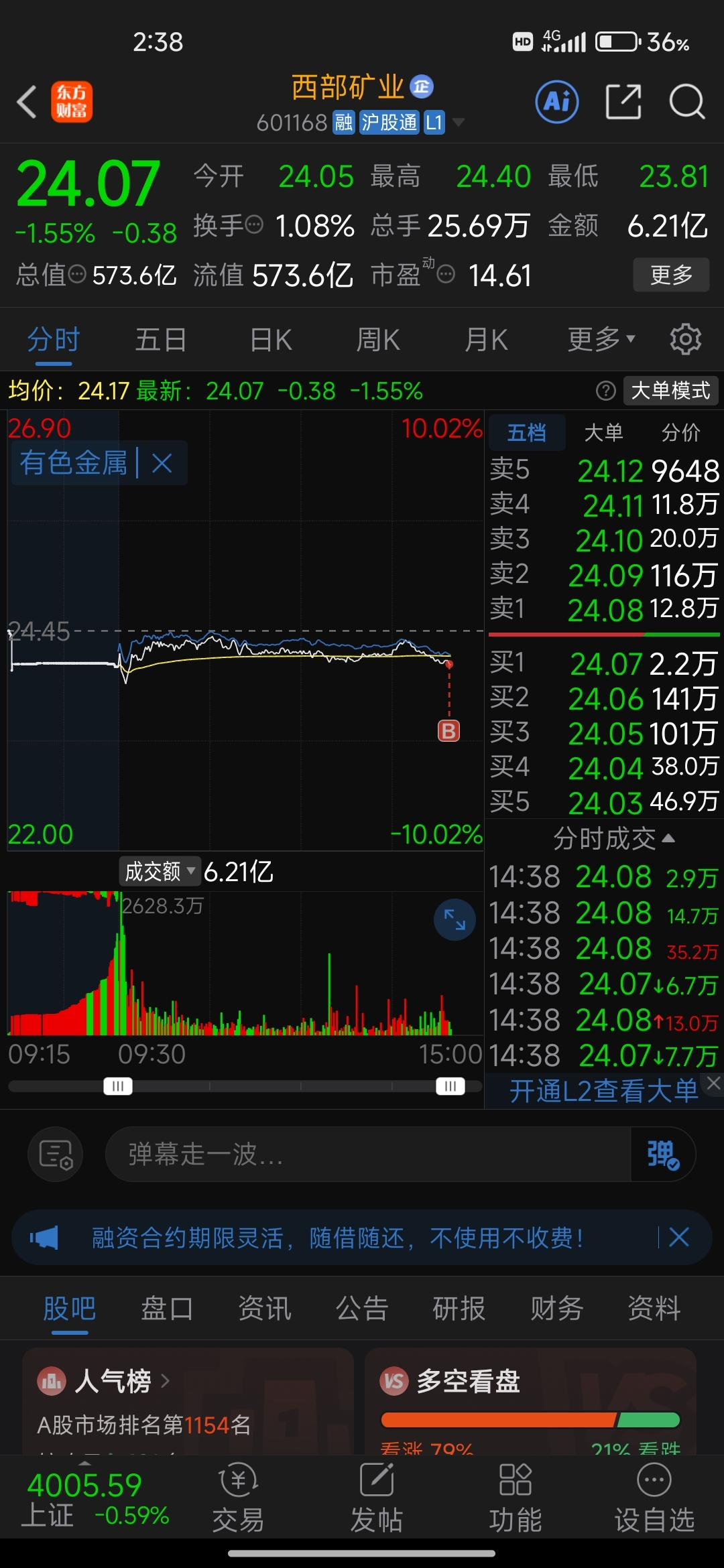$西部矿业(SH601168)$ 昨天补仓,今天补仓成本24.2也不算高,周一反弹随便24+