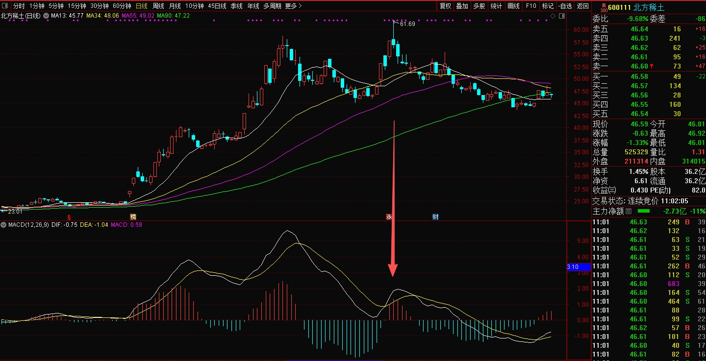 $西部矿业(SH601168)$ 西矿、洛钼,今天都创新高,但可能成为追高者的陷阱!它们当前的形态都类似于截图中北方稀土箭头所指的地方。大概率会继续调整!