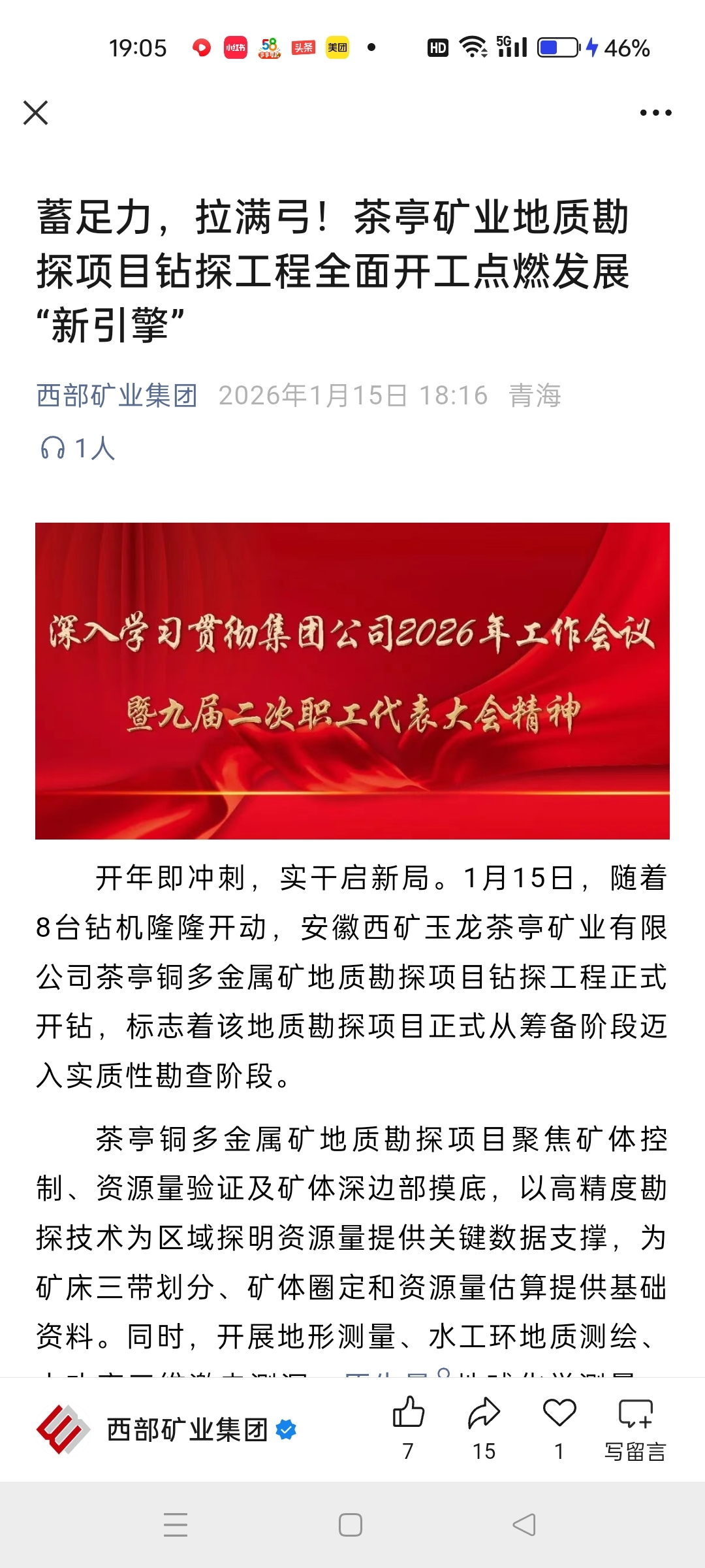 $西部矿业(SH601168)$ 最新消息