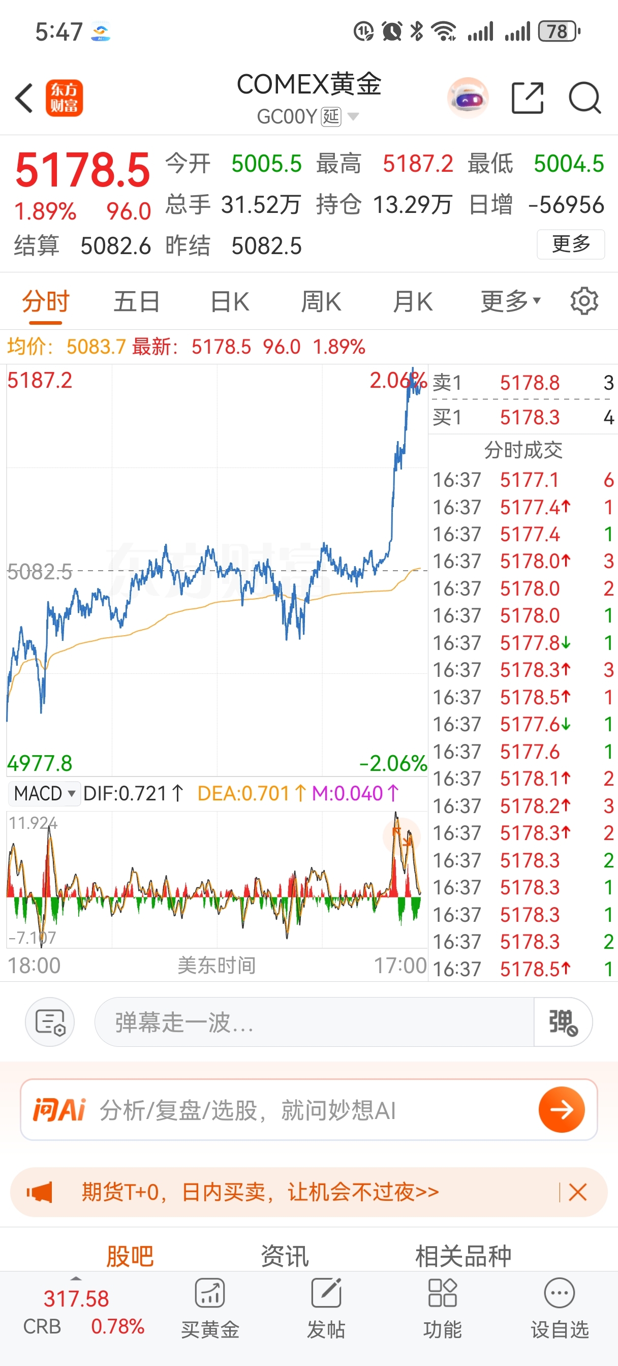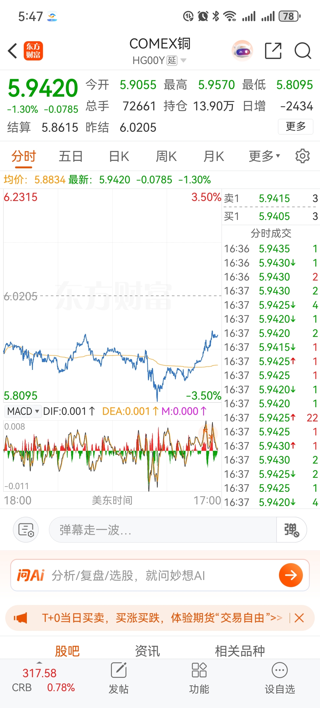 COMEX金暴涨,带动COMEX铜强力反弹!每次做T都是错误,昨天做T减仓了2/