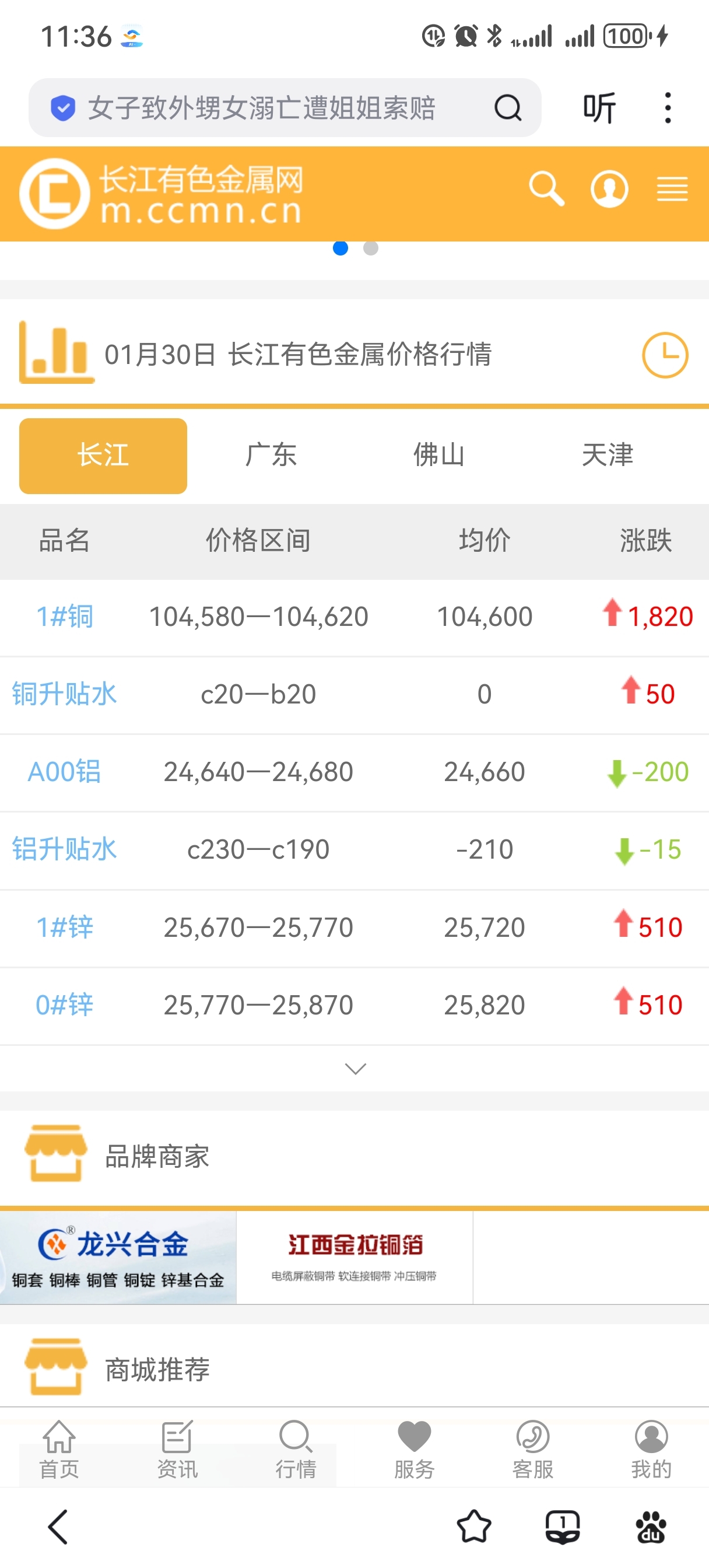 刚刚查询的“长江有色金属网报价”~铜的报价上涨了1820;最新报价104600;