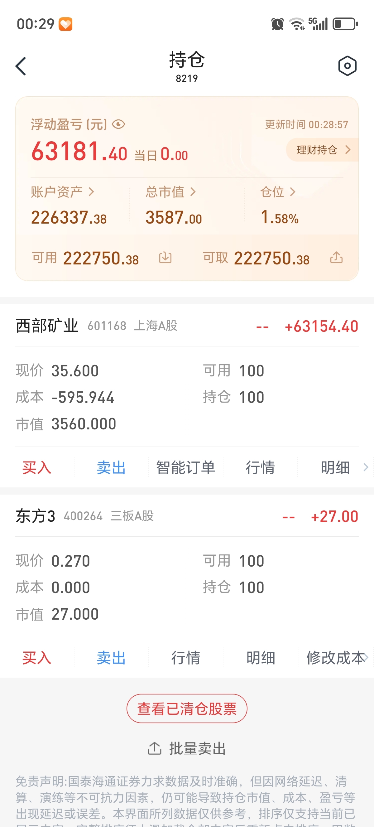 $西部矿业(SH601168)$ 本人星期五挂跌停板全部跑出来了,只留下100股看门,