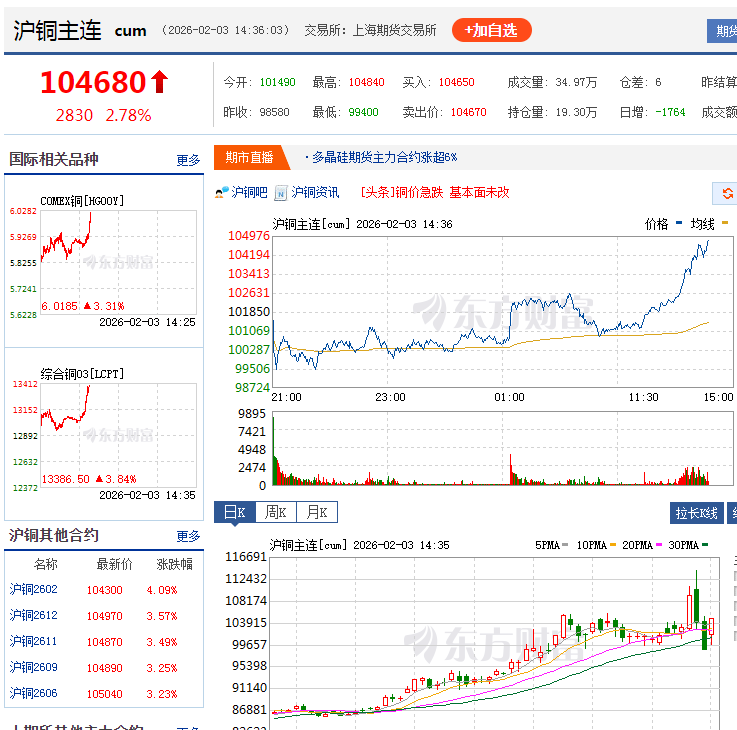 大家自己看期铜暴涨