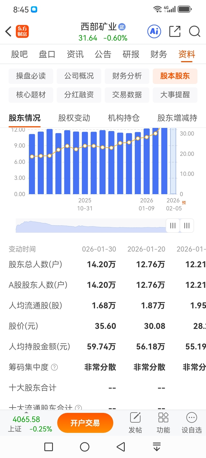 我RI,西矿这个把月股东增长30%,这么快,已经创历史记录了,看来不止我一个人看
