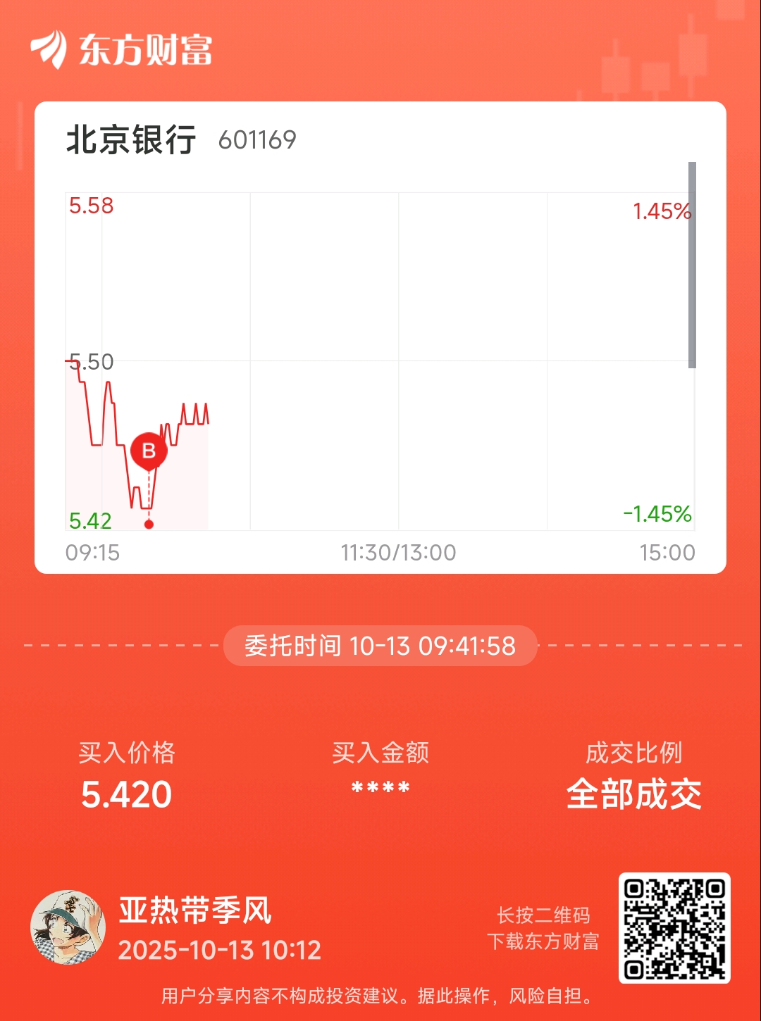 温馨提示: 1.根据《证券法》规定,禁止编造、传播虚假信息或者误导性信息,扰乱证券市场;2.用户在本社区发表的所有资料、言论等仅代表个人观点,与本网站立场无关,不对您构成任何投资建议。用户应基于自己的独立判断,自行决定证券投资并承担相应风险。《东方财富社区管理规定》