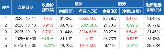 北京银行:融资净买入6552.71万元,融资余额31.42亿元(10-14)