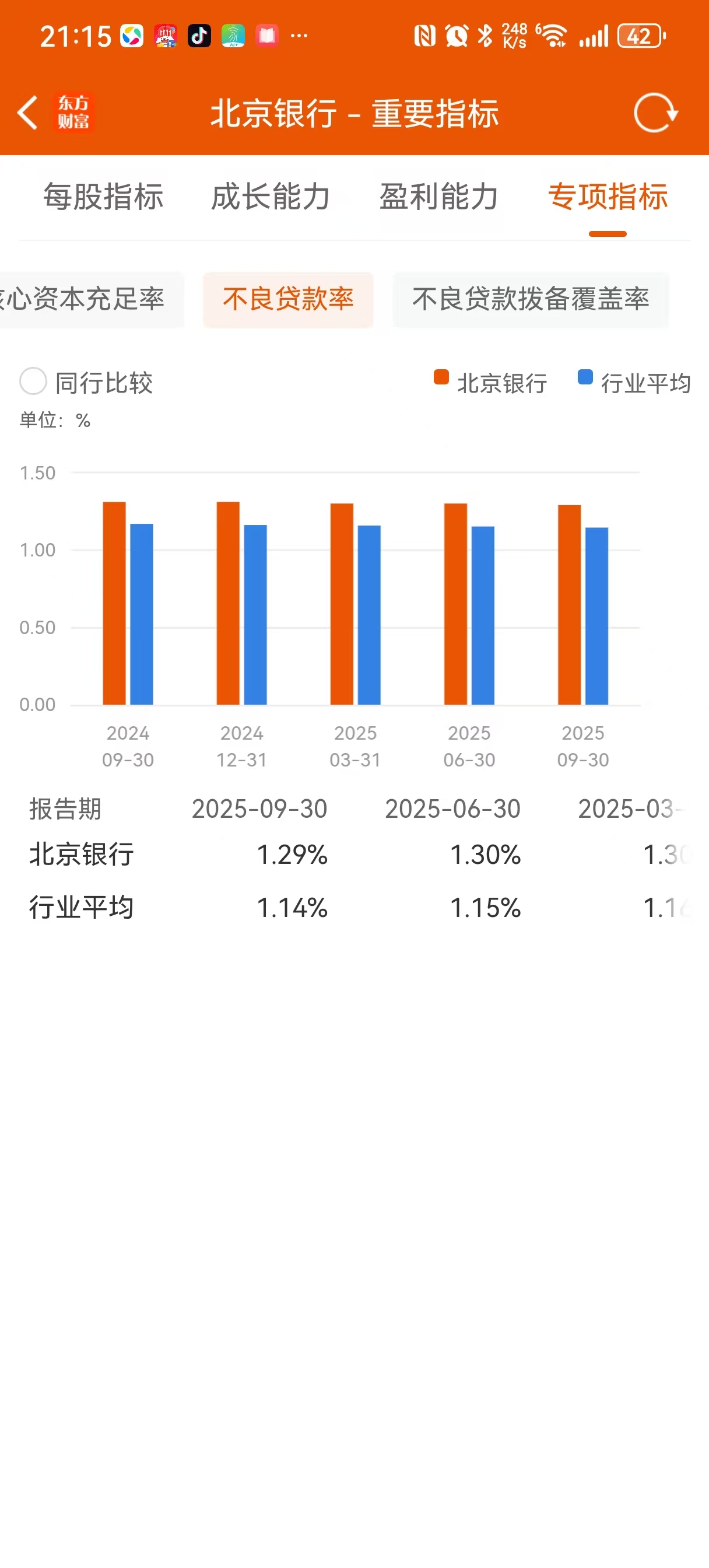 不良1.29.拨备没降,明天可能会借没有公布分红方案下杀,就数据来说还算中规中矩,吃息的跌了别哇哇叫,厦门银行都七块了,北银比厦门好太多