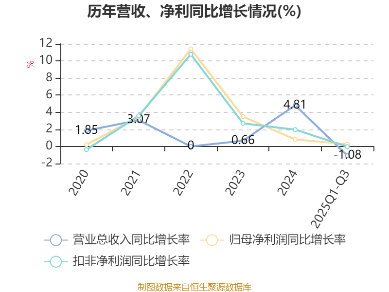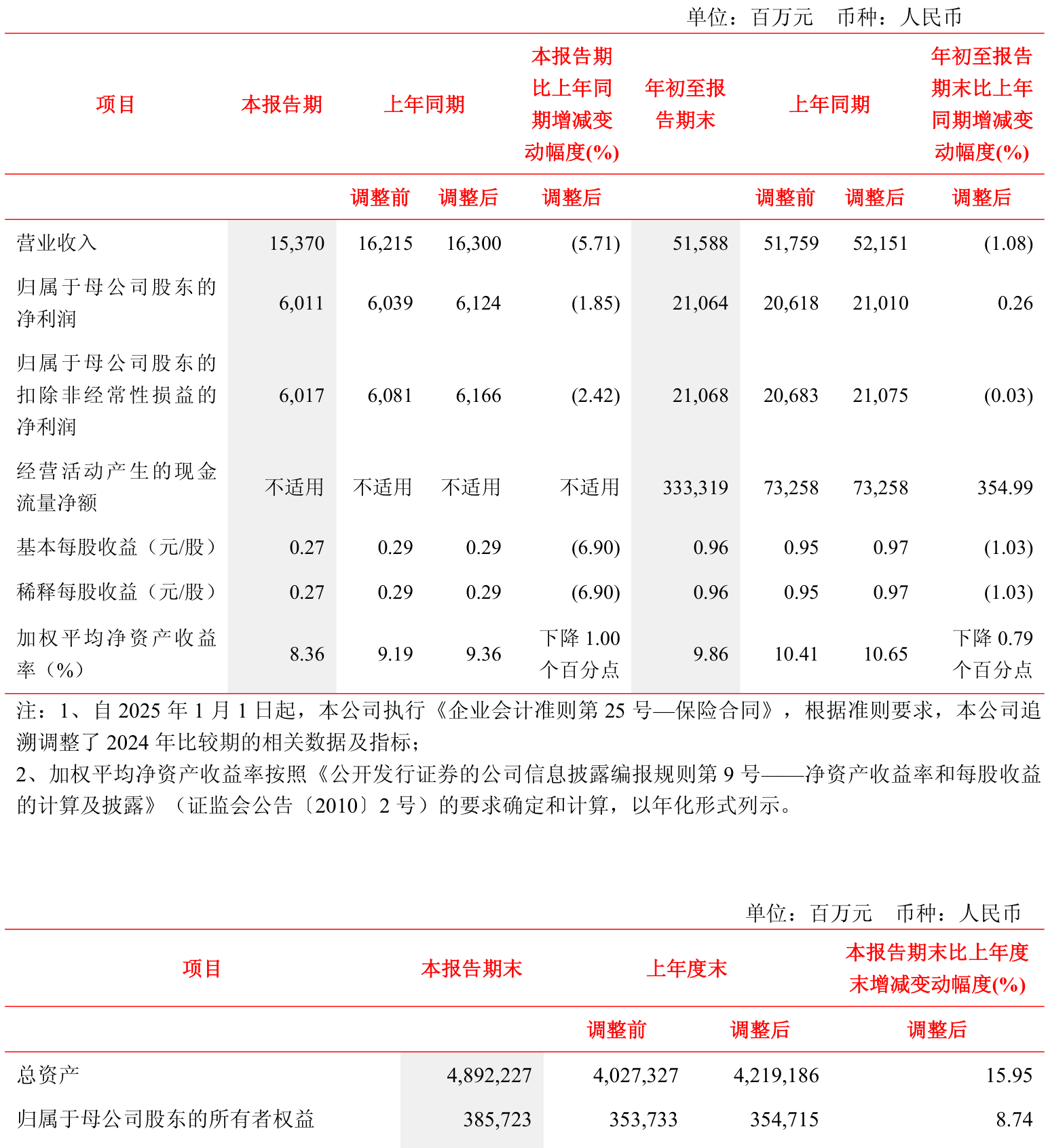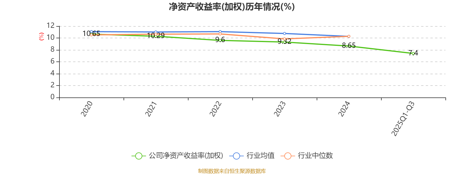 盈利能力方面, 2025年前三季度公司加权平均净资产收益率为7.4%,同比下降0.59个百分点。