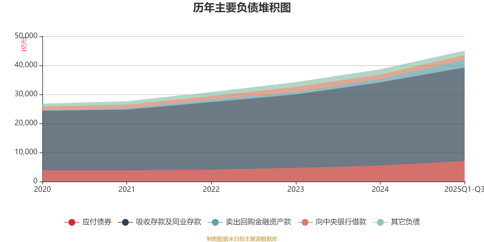 负债重大变化方面,截至2025年三季度末,公司卖出回购金融资产款较上年末增加121.1%,占公司总资产比重上升2.6个百分点;吸收存款及同业存款较上年末增加12.45%,占公司总资产比重下降2.05个百分点;应付债券较上年末增加28.74%,占公司总资产比重上升1.43个百分点;拆入资金较上年末减少33.45%,占公司总资产比重下降0.98个百分点。