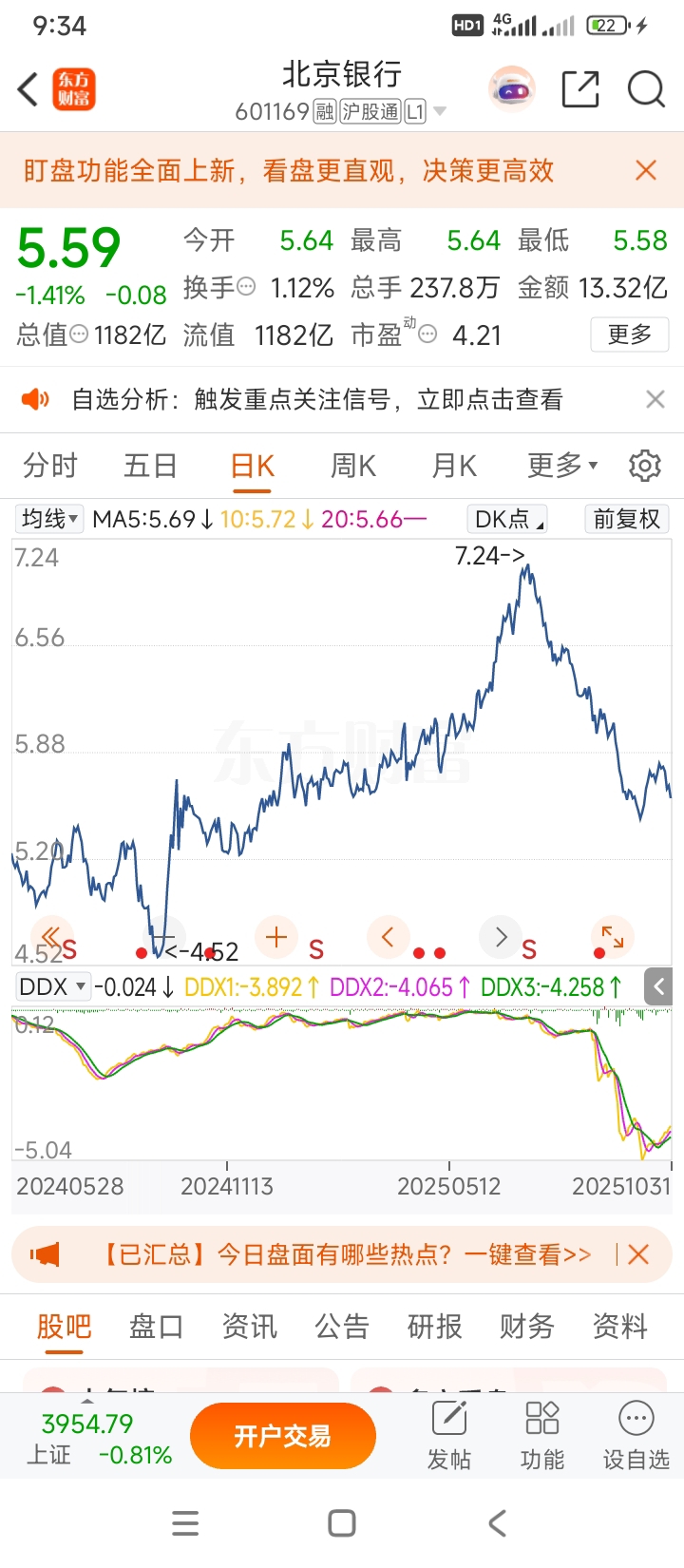 $北京银行(SH601169)$ 大盘2600点时你4.52元,大盘3040时你5.25元,大盘3950时你5.59元,无法理解