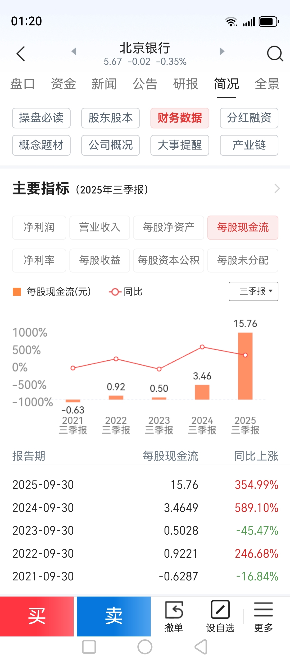 $北京银行(SH601169)$ 今年3季报有现金流是近5年从未有过的多,是发生了什么大事吗?