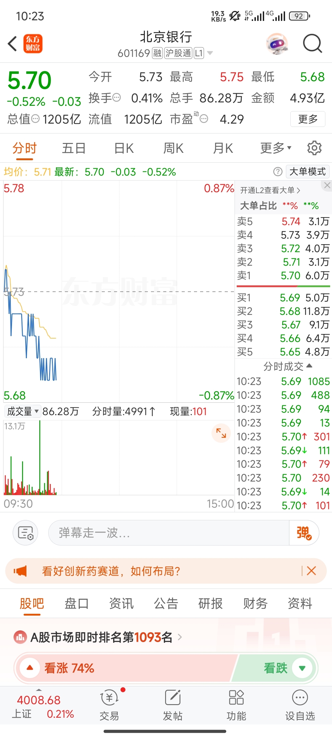 想买的不用急,拖单必破,挂5.66随便买,不过建议换别的银行,这支长期银行板块倒