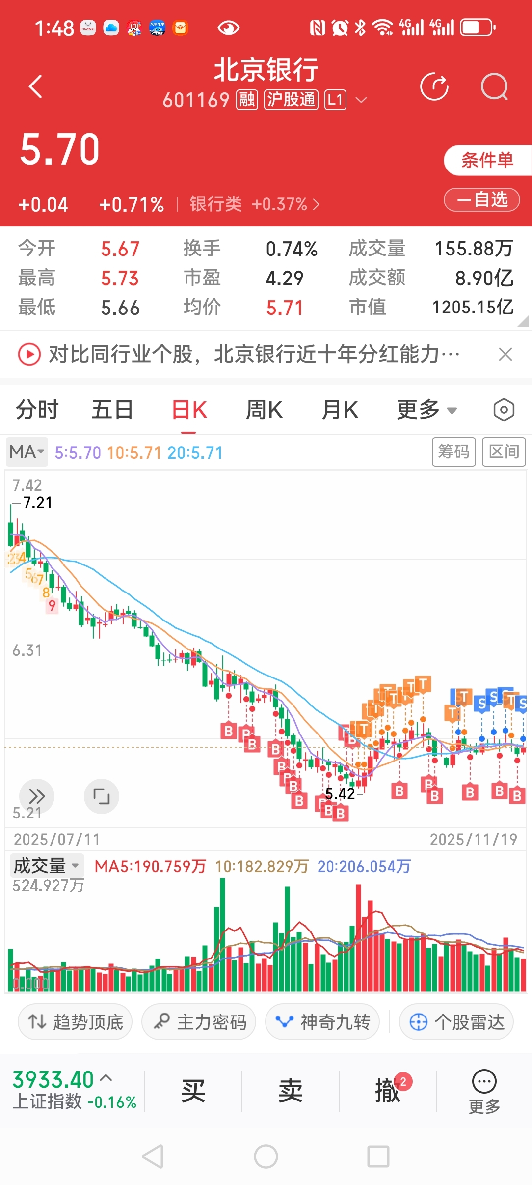 北京银行今年下半年真的太差了,T了两个月了成本才降低了1毛6分钱,我太难了,换做
