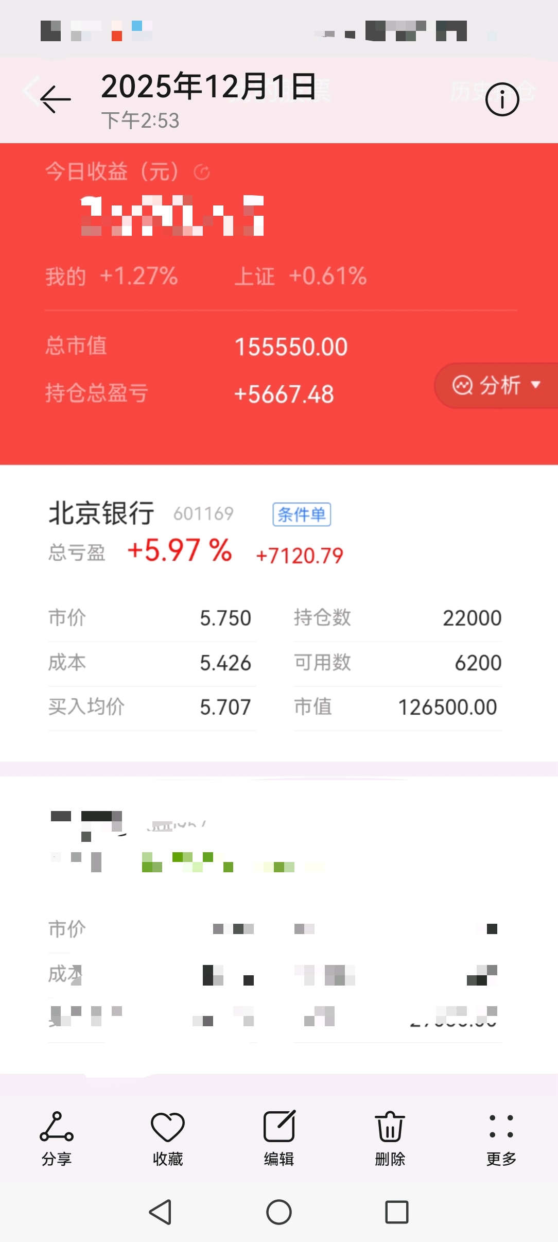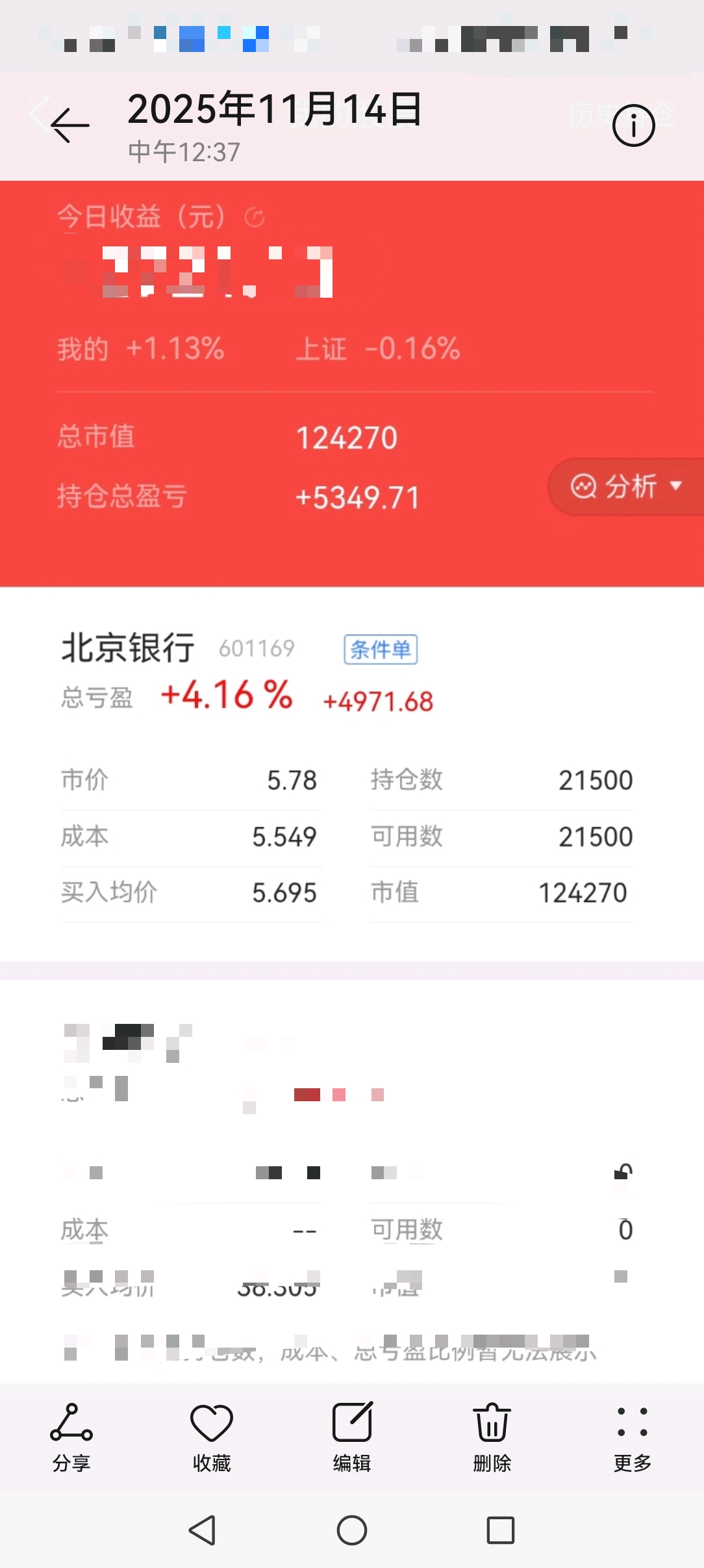 $北京银行(SH601169)$ 银行板块里垫底的LJ股,短期走势是躺平了,这半个月股价不涨反降。这股要么买了不看,要么凭本事自己做T,否则拿几个月,别的银行股涨它可能还亏!