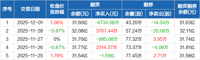 北京银行:融资净偿还4734.08万元,融资余额31.6亿元(12-01)