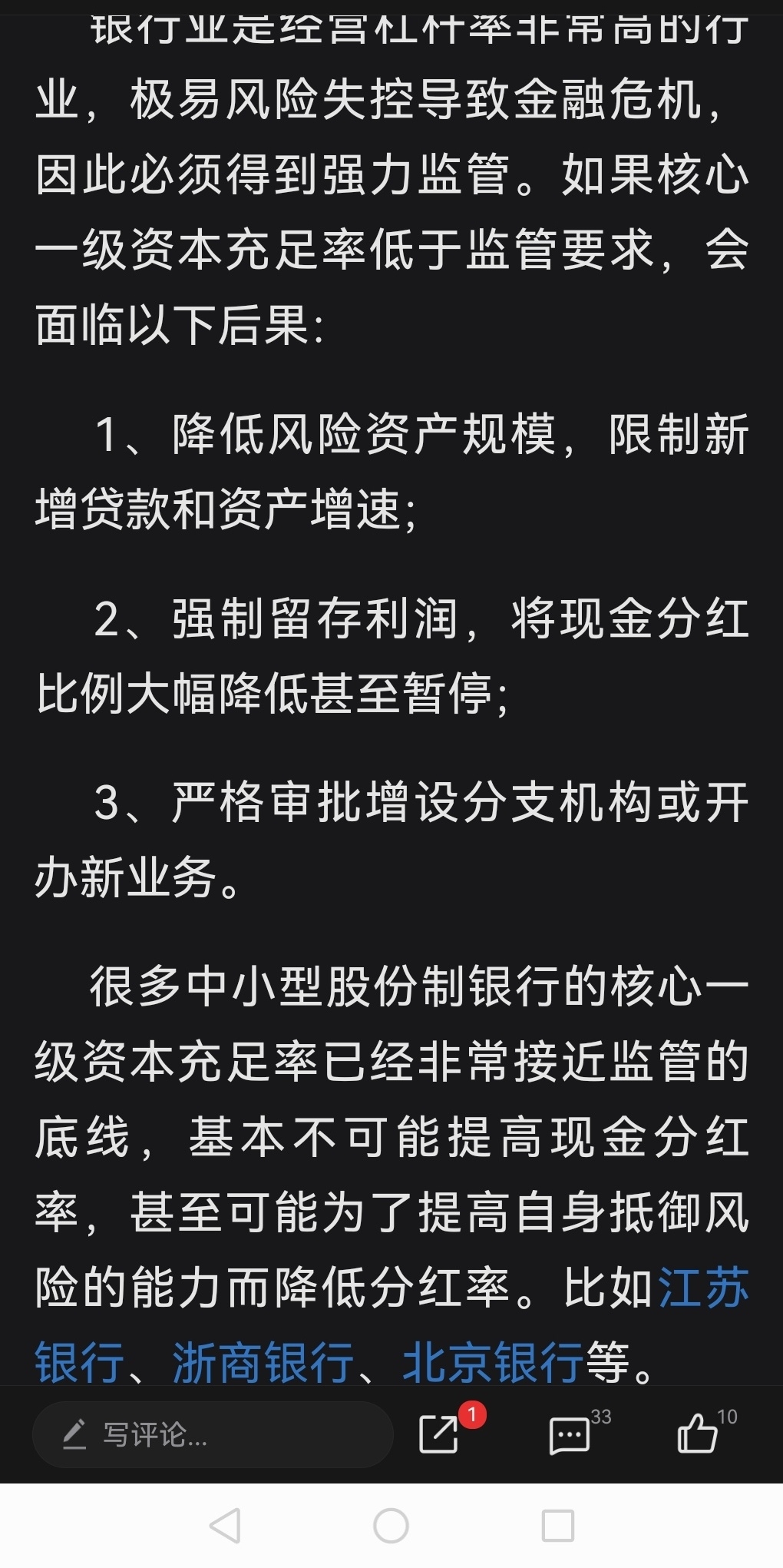 如果北京银行核心一级资本充足率再降低有可能分红大幅度降低,到时5个多点的股息率将梦碎。