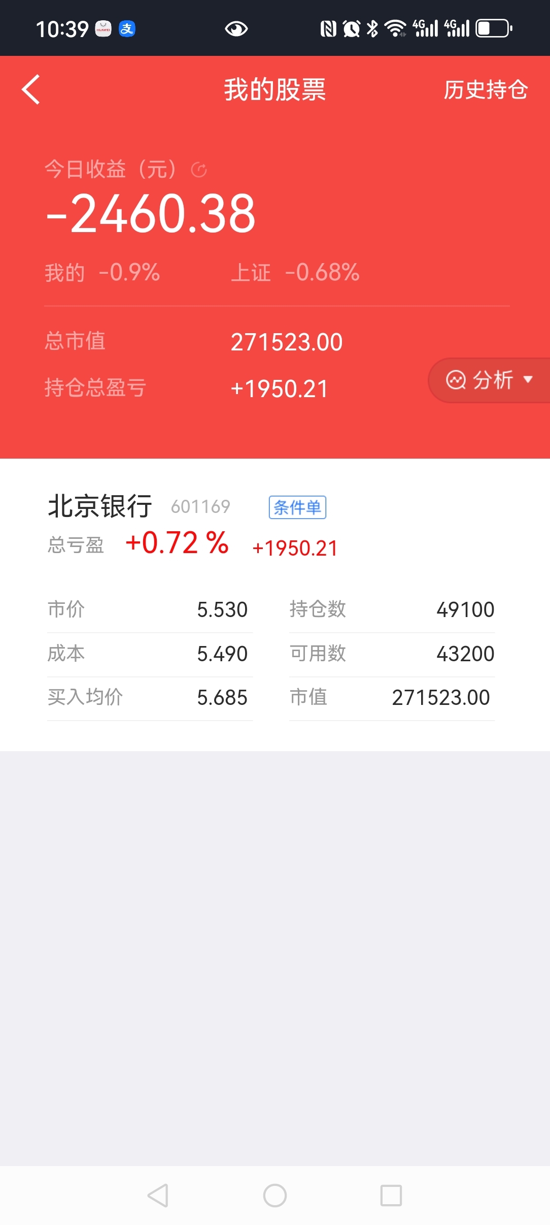 $北京银行(SH601169)$ 马个巴子的,满仓被套,删软件不玩了,只有过几年再看了